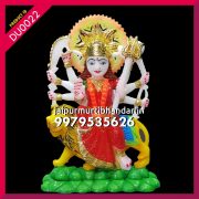 Durga, a gorgeous warrior riding upon a tiger or Lion. Devi Durga with a lion in a fearless pose is known of “Abhay Mudra”, signifying assurance of freedom from fear. The universal mother seems to be saying to all her devotees: “Surrender all actions and duties onto me and I shall lift you from your all troubles “.