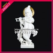 Krishna is often depicted wearing a peacock-feather wreath or crown, and playing the bansuri (Indian flute). In this form, he is usually shown standing with one leg bent in front of the other in the Tribhanga posture. He is sometimes accompanied by cows or a calf, which symbolise the divine herdsman Govinda. Alternatively, he is shown as a romantic and seductive man with the gopis (milkmaids), often making music or playing pranks.
