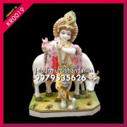 Krishna is often depicted wearing a peacock-feather wreath or crown, and playing the bansuri (Indian flute). In this form, he is usually shown standing with one leg bent in front of the other in the Tribhanga posture. He is sometimes accompanied by cows or a calf, which symbolise the divine herdsman Govinda. Alternatively, he is shown as a romantic and seductive man with the gopis (milkmaids), often making music or playing pranks.
