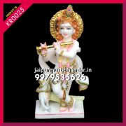 Krishna is often depicted wearing a peacock-feather wreath or crown, and playing the bansuri (Indian flute). In this form, he is usually shown standing with one leg bent in front of the other in the Tribhanga posture. He is sometimes accompanied by cows or a calf, which symbolise the divine herdsman Govinda. Alternatively, he is shown as a romantic and seductive man with the gopis (milkmaids), often making music or playing pranks.