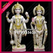 Lakshmi is also called Sri or Thirumagal because she is endowed with six auspicious and divine qualities, or gunas, and is the divine strength of Vishnu. In Hindu religion, she was born from the churning of the primordial ocean (Samudra manthan) and she chose Vishnu as her eternal consort.When Vishnu descended on the Earth as the avatars Rama and Krishna, Lakshmi descended as his respective consort.In the ancient scriptures of India, all women are declared to be embodiments of Lakshmi.The marriage and relationship between Lakshmi and Vishnu as wife and husband is the paradigm for rituals and ceremonies for the bride and groom in Hindu weddings. Lakshmi is considered another aspect of the same supreme goddess principle in the Shaktism tradition of Hinduism